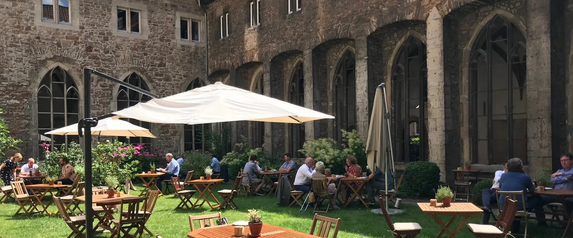 Das Café Kreuzgang, ein inklusives Projekt des Theologischen Zentrums in Braunschweig und der Neuerkeröder Wohnen und Betreuen GmbH, verzaubert seine Gäste mit einem ganz besonderen Ambiente. Das Gemäuer der St. Ulrici-Brüdern Kirche sorgt im Sommer für ein angenehm kühles Klima und das Licht, das durch die bunten Fenster in den Kreuzgang hineinströmt, für außergewöhnliche Lichtverhältnisse.